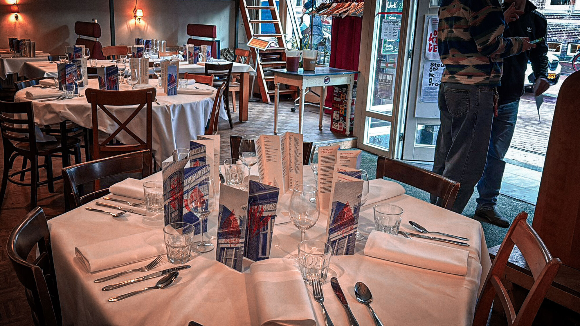 Speciaal voor deze gelegenheid ontwierpen wij een unieke menukaart die de identiteit van De Nieuwe Winkel en De Grote Broek combineert.
