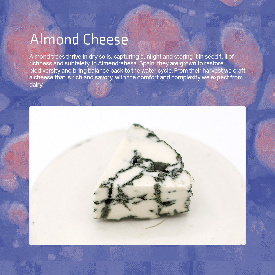 We verzamelden microscopische opnames van ingrediënten die binnen DNW Lab een rol spelen in onderzoek en ontwikkeling. Onder andere amandel, gerijpte amandel, Penicillium camemberti (de schimmel van camembert) en soja. Wat normaal verborgen blijft voor het oog, werd nu de basis van de visuele identiteit.